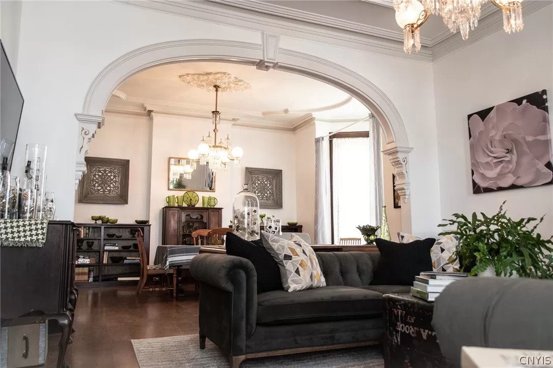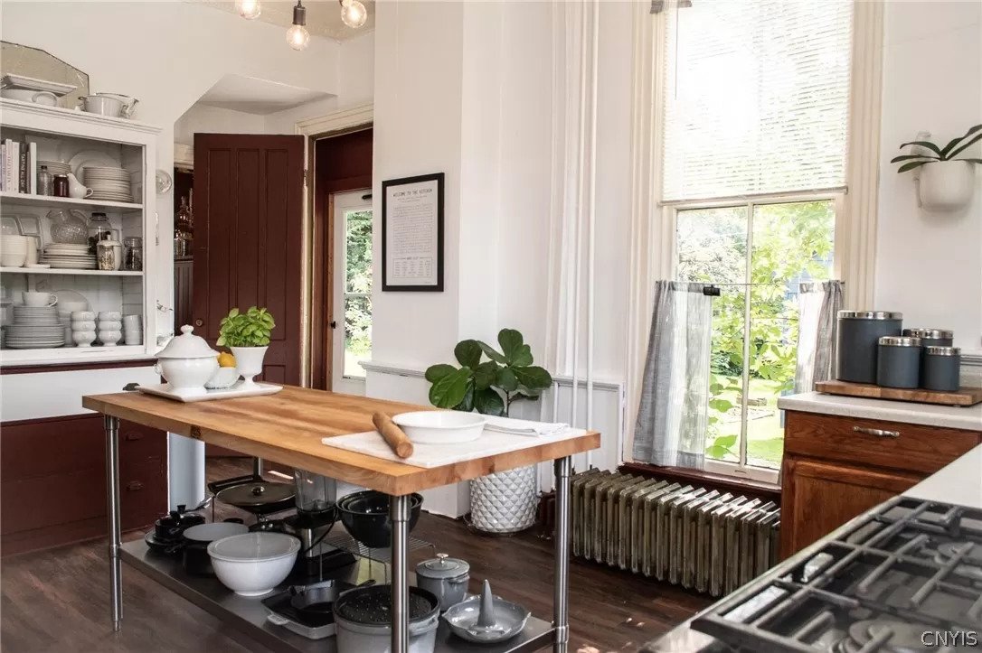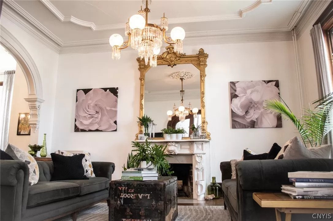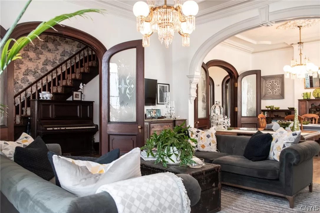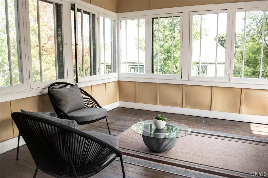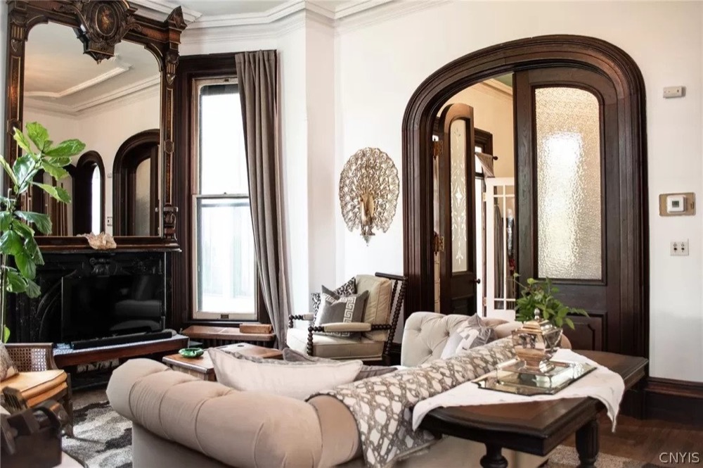 Step inside The Stillness Room, a soft and contemplative sanctuary nestled within this grand Victorian home. With its soaring high ceilings, gentle fireplace, and three tall windows that welcome in the quiet morning light, this room invites you to pause, breathe, and experience the rare gift of unhurried time. A tranquil waterfall offers a continuous whisper of calm, while lush, thriving plants cradle the space in living green.